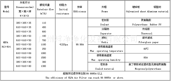 4)高效空氣過濾器過濾效率(EN1882):95%-99.999995%。