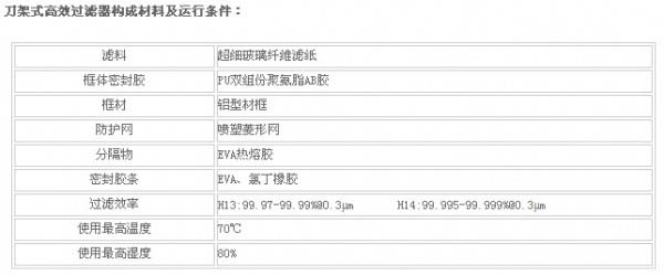 刀架式高效過濾器構(gòu)成材料及運(yùn)行條件