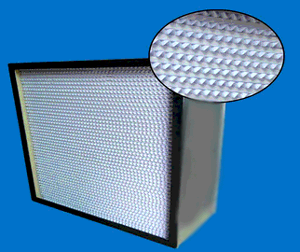 有隔板高效過濾器是用超細(xì)纖維作濾料、優(yōu)質(zhì)牛皮紙熱滾壓成形或采用膠版紙、鋁鉑作分隔板,與木框或鋁合金框膠和而成,具有過濾效率高,阻力低,風(fēng)量大的優(yōu)點(diǎn)。