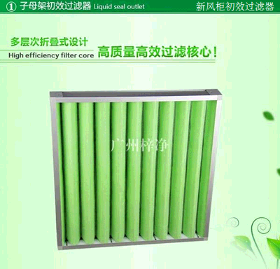 2、G2級初效過濾器產品性能:捕集5um以上的顆粒灰塵及各種懸浮物;風量大、阻力小、容塵高;使用壽命長。