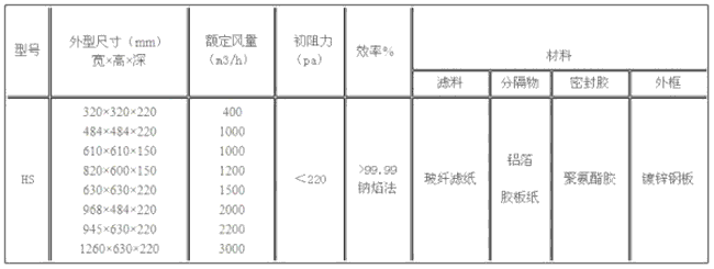 鋁框有隔板高效過濾器型號尺寸及其它參數: