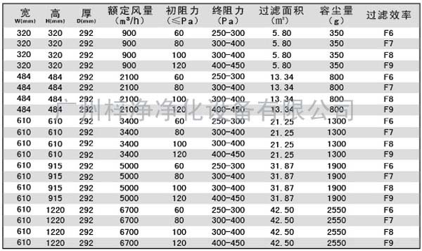 有隔板中效過濾器規格尺寸及技術參數:
