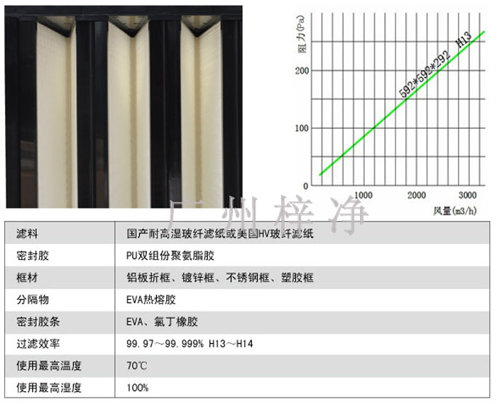 大風(fēng)量帶法蘭高效過濾器:箱式又稱組合式高效過濾器,采用無隔板設(shè)計(jì),形成”V”字型結(jié)構(gòu),箱式對細(xì)小顆粒物質(zhì)具有極好的過濾效率,帶法蘭高效空氣過濾器主要捕捉0.3um的空氣塵埃粒子,過濾效率99.99%。帶法蘭紙隔板高效過濾器設(shè)計(jì)大風(fēng)量可達(dá)到4200 m3/h,主要用在大風(fēng)量的環(huán)境使用。帶法蘭高效過濾器主要適用于制藥廠、醫(yī)院手術(shù)室、半導(dǎo)體廠、微電子廠、以及其它任何需要嚴(yán)格控制空氣污染的房間。