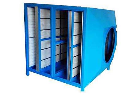 該活性炭吸附裝置主要由活性炭層和承托層組成。活性炭具有發達的空隙,比表面積大,具有很高的吸附能力。正是由于活性炭的這種特性,它在水的深度處理中被廣泛應用,如生活給水,污水后段的(凈水)深度處理等。活性炭箱工作原理是經過活性炭初效過濾器,袋式中效過濾器或者活性炭過濾器,活性炭高效過濾器過濾粉塵及污染。