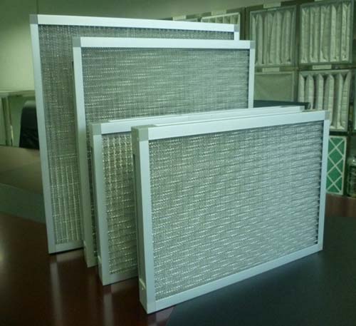 金屬網過濾器由不同規格的波折鋁網組成,交錯放置于內框中;金屬網過濾器能減少了鋁網間的空隙,起到更好的過濾;金屬網過濾器對于酸、堿或耐高溫的環境,可選用不銹鋼外框及不銹鋼波折網制作。